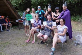 V rámci dnešního CTH dostaly děti ale pořádně zabrat. Přichystal jsem si na ně další úkol - stavbu vesmírné lodi, její prezentaci a následně první let plavidla. Každý superhrdina si rád vyrazí do vzdálených galaxií, když zrovna nezachraňuje svět, nebo mu, jako v mém případě, neškodí. A proč právě tento úkol? Dnešní celotáborovka byla zasvěcena Větronice, její superschopností je létání. Ale vlivem mých podlých kouzel o tuto schopnost přišla, haha! A tak musely vyrobit děti rakety. Statní konstruktéři se pustili do práce a později proběhla prezentace raket, lodí i talířů před veleváženou porotou. Součet bodů z prvního letu a za design nakonec ukázal překvapivé vítěze - týmy modrých, zelených a červených. Byl jsem tak s velkou nechutí nucen osvobodit Větroniku, která za bouřlivého potlesku přiletěla k dětem z nebeského štábu. A já jsem zase rozběsněný, že mě porazili táborníci. Ale já se nedám! Však uvidíte brzy...