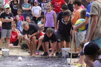Další den, další zákeřný úkol ze strany Chaose. Dnes nám představil IceWoman. Ta vládne ledovou rukou, nebo spíš kopím, a umí vyvolat tu největší vánici, nebo stvořit nebezpečnou ledovku. To je jí teď ale úplně k ničemu, neboť je omámená. Chaos navrhl alternativu boje - curlingový zápas, a tak se čtyři týmy pustily do práce. V pěti kolech se každý vystřídal v metání koštětem a vpuštění puku na dráhu. Zelený tým skončil na čtvrtém místě, následován modrým. Ve finále se utkaly týmy žlutých a červených, zvítězil tým červených! Osvobozená hrdinka vrhla se na Chaose, že ho roztrhá, ale jako pacifista se rozhodla přenechat boj na dětech, kterým bude pomáhat. Ty nadšeně souhlasily. Večer jsme koukli na letní kino, a po konci Úžasňákovi 2 jsme šli spát.