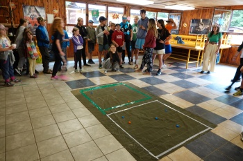 Poté se konala celotáborová hra. Hráli jsme klasické lodě, nicméně každý oddíl tam měl jinou funkci, takže jsme se zapojili všichni. Umisťovali jsme kameny, ale nemohli jsme se jich dotknout, takže jsme používali misky a lopatky. Užili jsme si při tom dost zábavy!