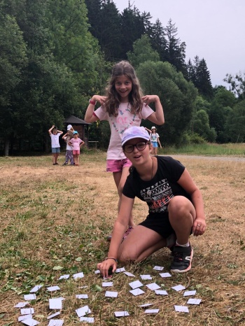 Jako každý den bylo třeba uklidit svoje chatičky, takže nás to ani v den služby neminulo. Ještě před obědem jsme si zahráli Dostihy, které jsme už dlouho chtěli hrát a pak pexeso s obličeji vedoucích.